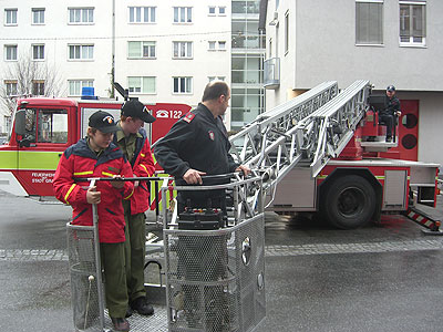 Abschließend wurde ein jeder mit der Drehleiter über die Dächer von Graz in schwindelerregende Höhen gehoben.