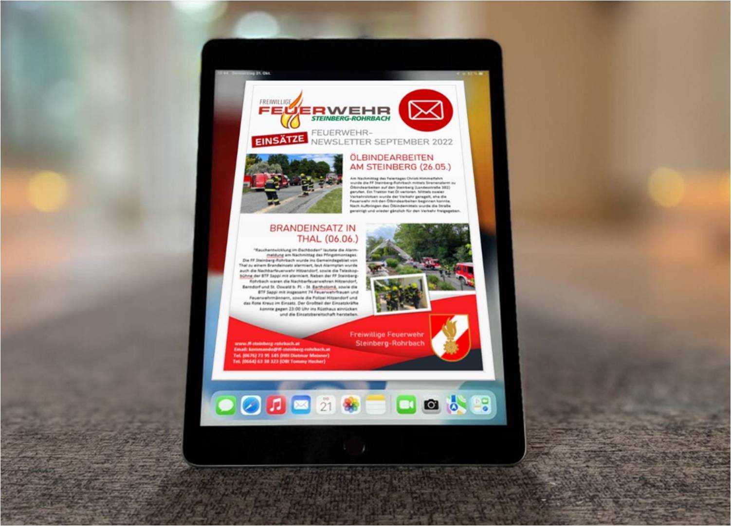Geschrieben von Markus DirnbergerAb sofort gibt es quartalsmäßig einen neuen Newsletter der FF Steinberg-Rohrbach! Sind auch Sie an unseren Aktivitäten, Einsätzen, Übungsberichten und sonstigen Neuigkeiten interessiert? Dann schreiben Sie uns einfach ein E-Mail an Diese E-Mail-Adresse ist vor Spambots geschützt! Zur Anzeige muss JavaScript eingeschaltet sein! und Sie sind somit automatisch im Verteiler unseres Newsletters hinterlegt. Wir freuen uns!