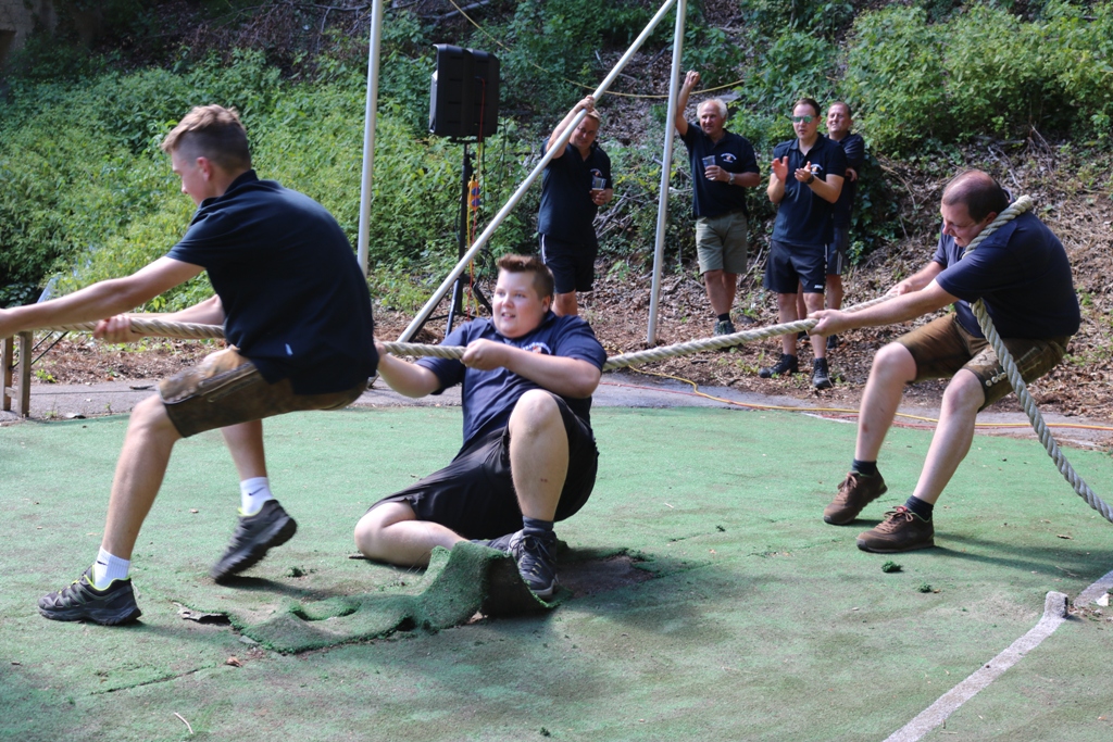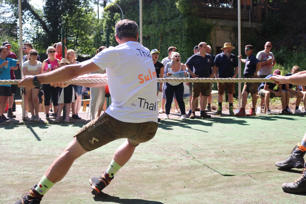HBI Dietmar Meixner und OBI Tommy Hecher konnten zahlreiche Ehrengäste, darunter Bgm. Matthias Brunner (Marktgemeinde Thal), VBgm. Ing. Werner Roth (Marktgemeinde Hitzendorf), ABI Hannes Koch (Feuerwehrabschnitt 6), sowie zahlreiche Gemeinderätinnen und Gemeinderäte, Unternehmerinnen und Unternehmer und Personen aus dem öffentlichen Leben begrüßen. Der großartige Erfolg dieses Festes wäre ohne den vielen ehrenamtlichen Helferinnen und Helfern nicht möglich! Danke für die tollen Leistungen der Feuerwehrkameraden, die von den Vorbereitungsarbeiten bis hin zu den Aufräumarbeiten dabei waren! Dank auch an die zahlreichen Sponsoren, den Fassbierspendern, Mehlspeisspendern und allen, die dieses großartige Fest möglich machen! Highlight war heuer sicherlich der Teambewerb im Seilziehen. Anlässlich des 90-jährigen Jubiläums unserer Feuerwehr wurde dieser Bewerb, der im Jahr 1984 zum letzten Mal stattgefunden hat, wiederbelebt. 15 Mannschaften haben daran teilgenommen. Der Sieg ging an die FF Stiwoll, auf Platz zwei landete der ÖKB Hitzendorf, gefolgt von der Gruppe „ToThal BruThal“. Aufgrund des großartigen Erfolges dieses Bewerbes werden wir diesen im kommenden Jahr wiederholen und freuen uns jetzt schon auf zahlreiche Mannschaften.