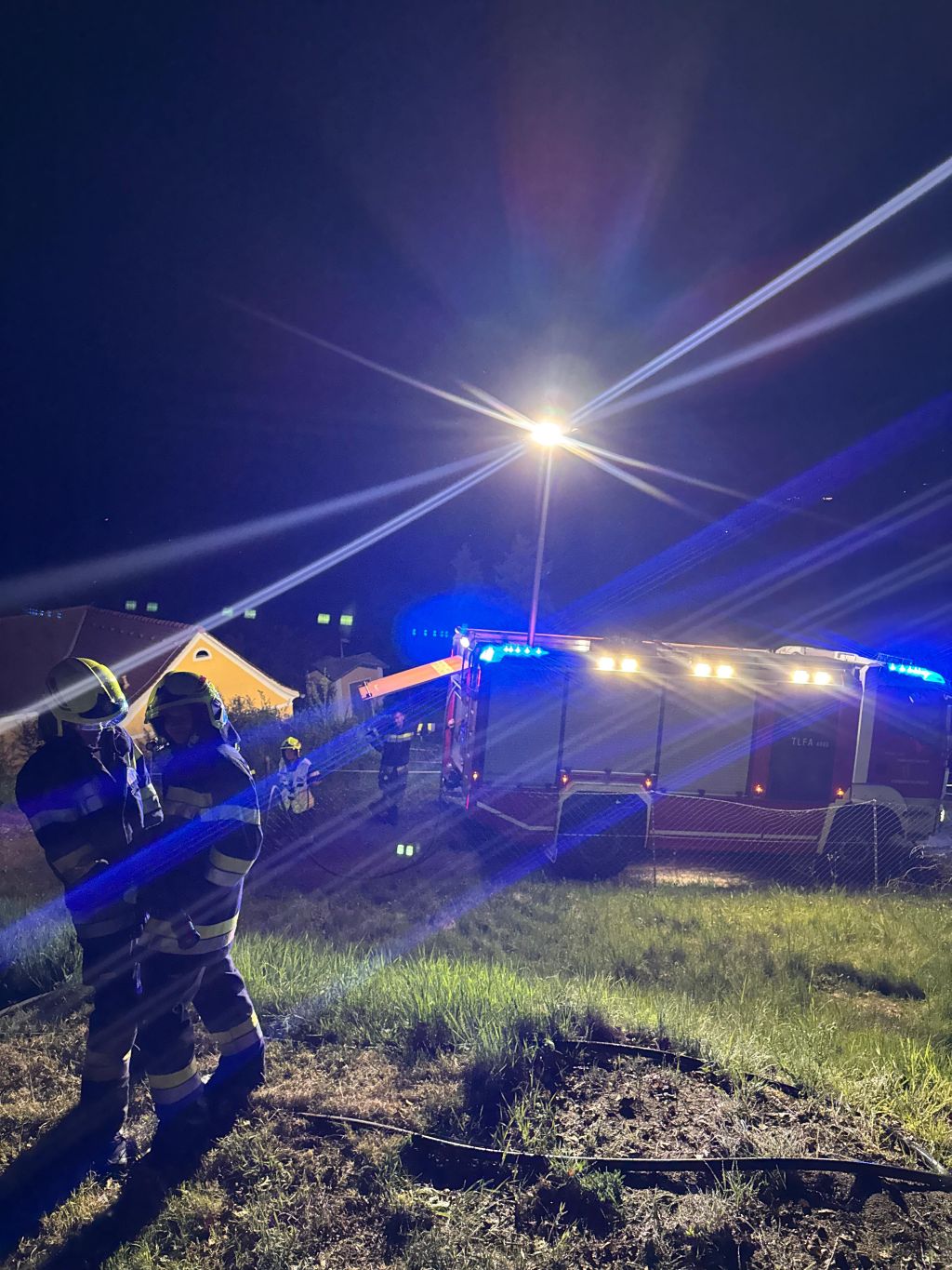 Nach der Lageerkundung wurden umfangreiche Nachlöscharbeiten und Kontrollen mittels Wärmebildkamera durchgeführt und anschließend die Einsatzstelle an die Polizei übergeben.