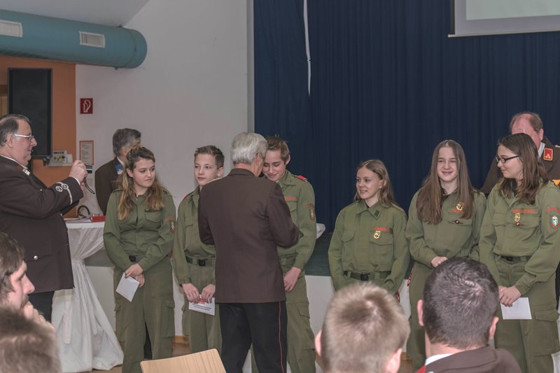 Lena Schmiedbauer und Jasmin Koller von der Feuerwehrjugend, wurden in den Aktivstand aufgenommen und tragen somit den Dienstgrad Probefeuerwehrmann. Die verantwortungsvolle Tätigkeit des Gruppenkommandanten der Jugend wurde an Alice Meixner übertragen.