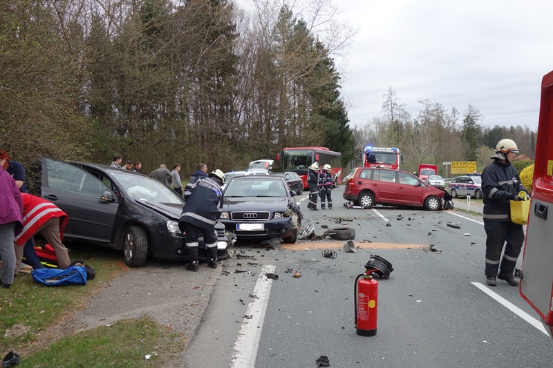 Geschrieben von Matthias HuberSchwerer Verkehrsunfall auf der L301, Bereich Haslau, mit vier beteiligten Fahrzeugen.